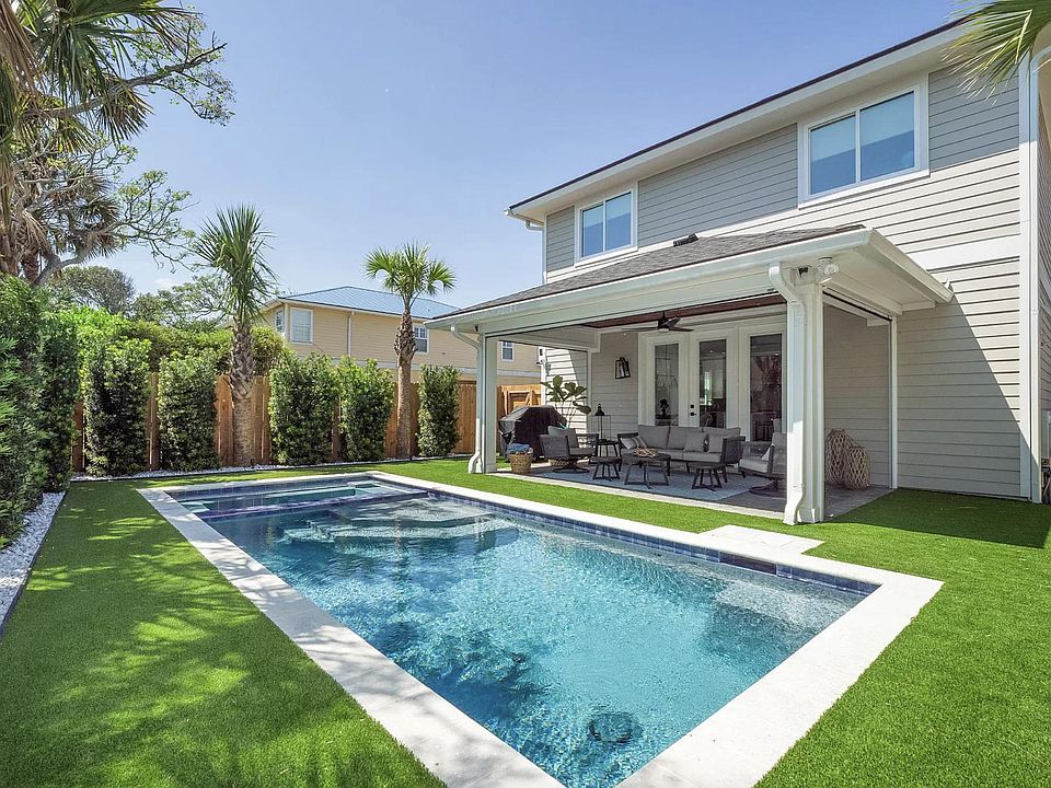 Experience coastal living at its finest in this stunning 4-bedroom, 3.5-bathroom home, located just one block from the beach and minutes from the vibrant Beaches Town Center. Built in 2020, this impeccably designed home features 2,500+ square feet of thoughtfully curated space, blending modern elegance with relaxed coastal charm. Property Highlights: - Furnished & Move-In Ready: Coastal modern decor with stylish, high-quality furnishings. - Spacious Open Concept: Light-filled living and dining areas with soaring ceilings and designer touches. - Chef's Kitchen: White shaker cabinetry, quartz countertops, stainless steel appliances, a gas cooktop, and a large island perfect for entertaining. - Premium Finishes Throughout: Light oak hardwood floors, custom closets, upgraded trim package, and high-end lighting. - Primary Suite with Ocean Views: Private balcony, spa-like en-suite bathroom with dual vanities, a soaking tub, and a walk-in shower. - Resort-Style Outdoor Space: Heated pool & spa, expansive lanai with motorized shades, turf grass, and a fully fenced backyard for privacy. Unbeatable Location: - One block from the beach enjoy morning walks on the sand or sunset bike rides. - Minutes from Beaches Town Center, home to popular dining, shopping, and entertainment. - Convenient to top-rated schools, parks, and major roadways. Available for rentals of 1 month or longer. Ideal for executives, families, or anyone seeking an upscale coastal retreat. Don't miss out on this exceptional home contact us today to schedule a viewing! Owner pays for water and electricity, wifi. Renters responsible for Gas as that powers use of pool (if you want to heat it) and hot tub. Looking for rental starting in March 15th. Any rental that is more than a month is welcome.