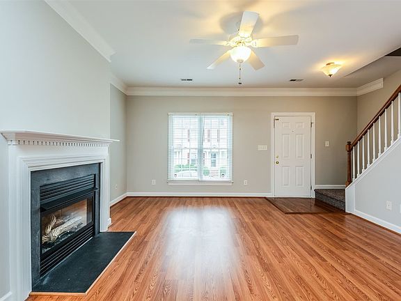 This Cary two-story offers hardwood flooring, a fireplace, and a one-car garage. Upgraded features include overall interior paint and newly installed carpet. Community pool and common area maintenance are part of the HOA.