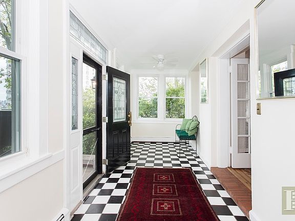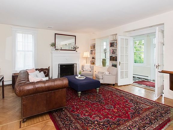 Bright and spacious three-story historic single-family home perched on top of the Palisade Cliffs offering tremendous sunlight, NYC views and includes a driveway with parking for two cars. Located at the end of a quiet tree-lined dead-end street adjacent to Washington Park, just west of Hoboken and just north of Jersey City Heights, this charming 1913 home sits on a double lot measuring 50'x100' and includes 4100 square feet of living space over three levels with six bedrooms, three-and-a-half bathrooms, two living rooms, a media room, an office, a basement and a lush garden that wraps around the home. A delightful sunroom at the main entrance welcomes you into an expansive living room with a wood burning fireplace, built-in bookshelves, original parquet hardwood floors and a historic curved staircase. The sizable formal dining room features a bay window with southern exposure and views of Washington Park. A large extension built in 1991 nearly doubled the amount of living space and created room for an oversize eat-in-kitchen surrounded by windows featuring a 60' Garland professional range with a custom vent hood, black countertops and white cabinetry. Next to the kitchen is a media room, powder room, laundry closet and access to the garden with a patio for alfresco dining under the trees. Upstairs on the second level are five bedrooms, two full bathrooms and nine closets that provide abundant storage space. The top floor serves as an enormous master suite including a huge living room with vaulted ceilings, a large bedroom with two closets and views, a full bathroom with a walk-in shower and a unique office space with dormer picture windows providing views of NYC and Washington Park. Other highlights include central air conditioning, oak hardwood floors throughout, roof replaced in 2009, electrical/plumbing/mechanicals updated in 1991, a full basement for storage/mechanicals and an additional narrow 50' long parcel of land across the street on the edge of the Palisades. 203 Manhattan Avenue is conveniently located only two blocks to the Congress Street NJ Transit Light Rail stop with elevator access to Hoboken and one block to the bus stop for transit to Port Authority.