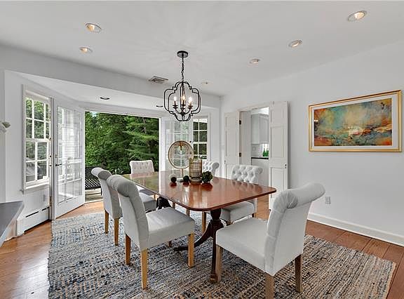 Fabulous Bedford 4 bedroom/4.1 bath charmer with beautiful private land and gunite pool on an idyllic country road. Streaming sunlight flows through the entire open floor plan with an updated kitchen, bright family room with fireplace and oversized picture windows, lovely dining room, living room with another fireplace and an extra office/den area, all of which capture the stunning outdoor views. The kitchen features a soaring ceiling, skylight and easy access to an entertaining patio that overlooks the beautifully landscaped meadows and heated pool. The lower level includes a cozy bar and family room with a third fireplace. This house is turnkey and ready to go.