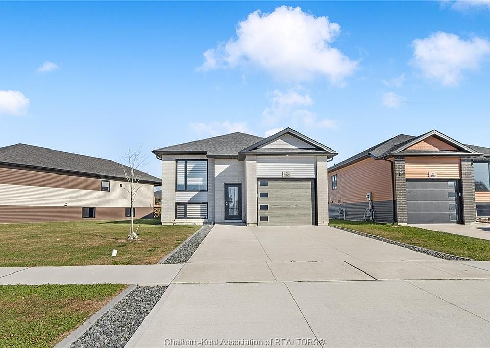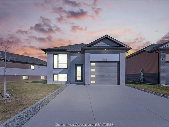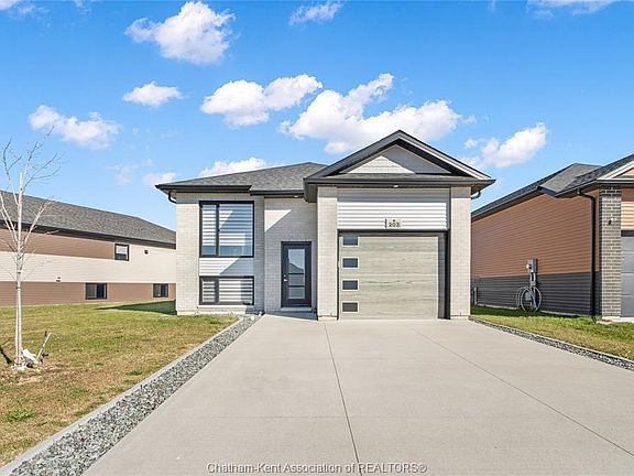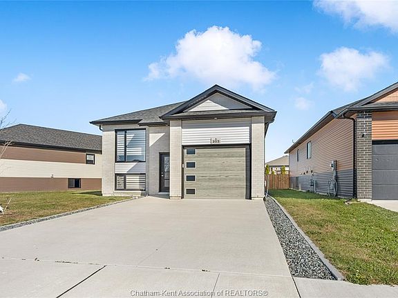 Welcome to this beautifully appointed raised ranch in a desirable Southwest Chatham neighbourhood, just minutes from Highway 401. This impressive 2+2 bedroom home blends modern style with exceptional functionality, offering an ideal layout for growing families, multi-generational living, or anyone seeking generous, comfortable living spaces. Step inside to an inviting open-concept main level, flooded with natural light from oversized windows. The modern kitchen features a spacious peninsula perfect for meal prep and casual dining, complemented by extensive cabinetry and an effortless flow into the dining and living areas—an excellent setting for family gatherings and entertaining. The primary bedroom offers a private retreat with a walk-in closet and 3-piece ensuite. A second bedroom with double closets and a well-appointed family 4pc bathroom complete the main level. The fully finished lower level significantly expands your living space, featuring a large family room ideal for movie nights or hosting guests. Two additional bedrooms—each with walk-in closets—provide versatility for in-laws, teens, or extended family. A large laundry room and a stylish 3-piece bath with tiled shower add even more convenience and flexibility. Outside, enjoy the large concrete driveway, covered reach porch with stairs leading to the backyard and meticulous landscaping! A truly move-in-ready home in a prime location—offering comfort, space, and a layout that adapts to your lifestyle.
