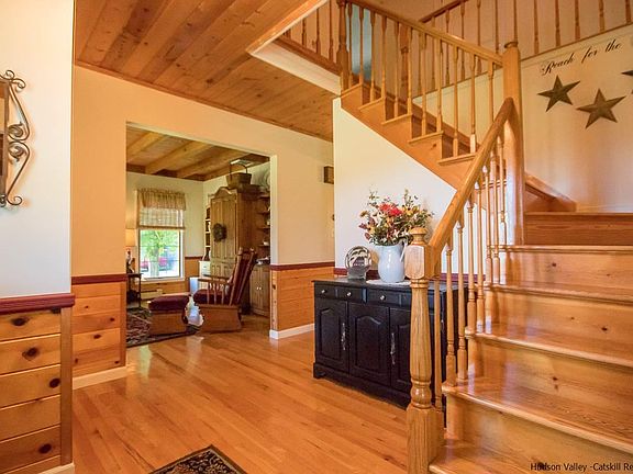 Country Comfort! This beautifully maintained 4 bedroom Colonial home enjoys the peace and quiet of protected lands on 3 sides. The property is landscaped with love and includes fruit trees, berry patches, perennial gardens that bloom from Spring through Fall. Owner built with quality materials, wood floors, beamed ceilings and attention to details. There are both formal areas in the living room and dining room and casual spaces in the family room, breakfast room and Florida room. Enjoy the fire in the fireplace as you prepare dinner in the recently re-done kitchen with granite counter tops and custom cabinetry. There is a wonderful flow through the house and once you step in to the Florida room your eyes lead you to the deck, Koi pond and patio where entertaining can be enjoyed in the private outdoor living space and don't miss the fire-pit! The sound of the waterfall spilling in to the pond enhances bird watching, meditation and barbecues. This home is very low maintenance with many recent upgrades. Additional features include central A/C, security system, central vacuum, whole house fan, 5 zone heating system and stand by generator. Attic spaces and dry basement provide ample storage, plus the baby barn and shed. The big bonus is the 42 X 50 barn building with electric and water. Newly planted shrubbery will screen the country road in short time. The property is conveniently located with easy access to Woodstock, Phoenicia, Kingston and the NYS Thruway. The new Rail Trail and Ashokan Reservoir are just minutes away. Enjoy walking, biking, hiking and fishing! This entire property is truly a pleasure to show.