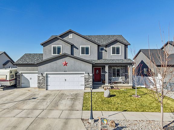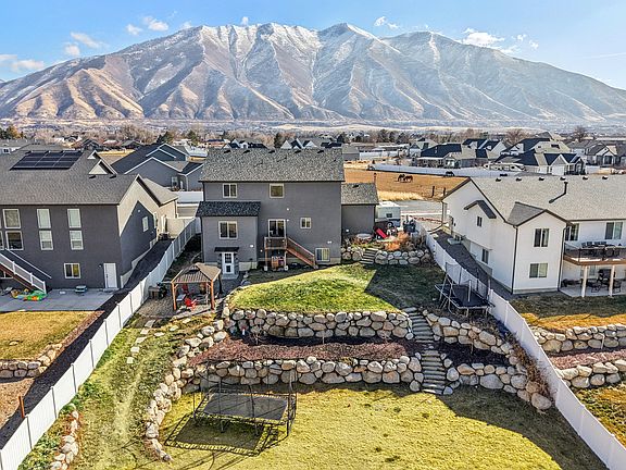 Price Drop! Located in desirable Mapleton, this 0.35-acre property features a large terraced backyard, fully fenced, with fruit trees, no backyard neighbors, gazebo, propane fire pit, RV parking, a 3-car garage, and no HOA. The interior includes huge walk in pantry, granite countertops, four bedrooms and a loft upstairs, including a primary suite with a separate tub and shower and a large walk-in closet. The daylight basement provides two additional bedrooms, a bathroom, theater room, office and a separate walkout entrance. Home is situated within an area served by exceptional schools with easy access to I-15, Highway 6, and Highway 89.
