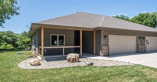 Whether you are looking for your first home or last home this home is it! This zero entry slab on grade, ranch twin home is a cut above the rest! Meticulously built in 2015, this 2 bedroom, 2 bath, over-sized two stall garage offers something for everyone! From the moment you enter through 18x6 covered front porch you will step into 1,384 finished square feet of bright open space with 9 ft ceilings! Enjoy the open concept and plenty of room to relax or entertain. Stunning kitchen offers custom granite counter tops, tile back splash, stainless steel appliances, and tons of cupboard space. Off the dining room boast a 12x12 enclosed porch with no backyard neighbors and a vacation view with a creek! You will love the large master bedroom and bathroom with a double vanity, walk in shower, and an amazing 9x5 walk in closet. If that is not enough space you can always add a HE or SHE cave in the insulated garage with epoxy floor! Free rest of season snow removal and next season Lawn mowing!