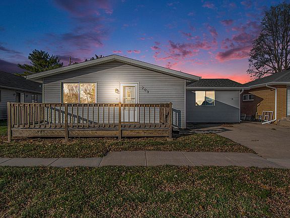 Discover the joys of small-town living in this inviting ranch-style home! Enjoy a bright, open layout with a large galley kitchen and dining area, perfect for gatherings. The spacious primary suite features a walk-in closet and a classic clawfoot tub in the ensuite bath--a perfect retreat.Two additional bedrooms and a full bathroom offer plenty of space for family or guests. The massive heated 24'x48' shop, with 220v plug and ample outlets, fits four cars and all your tools or equipment.Relax outdoors on the brick patio or make use of the 10'x16' shed for extra storage. This charming property has it all--schedule your tour today!