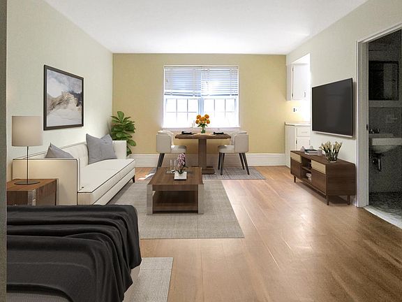 Apartment #15 is a sunny second-floor studio apartment which features a thoughtful layout, two large closets, kitchen with a window and garbage disposal, a tile bath, air conditioning, and mini blinds. With fresh paint and new floors, the apartment is bright and cheerful. It is served by XFinity and FioS. Heat and water are included in the price of rent. Tenant pays electric and communications. All applications are subject to credit check. Parking options available. Please see our website NarberthApartments.com for more photos, descriptions and available apartments.