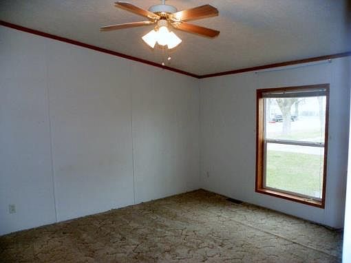 Four bedroom two full bath home in Keota. This home has a master suite with a walk-in closet. The master bedroom measures 11'5" x 12'11" has carpet flooring and a ceiling fan, the walk-in closet also has carpet and measures 9'3" x 3'11". The master bathroom has a mixture of carpet and vinyl flooring, has a shower/tub combination, and storage cabinets, it measures 6'6" x 10'2". The additional three bedrooms all have carpet flooring and good sized closets. The first bedroom measures 9' x 11'7", the second measures 9'6" x 9'2", and the third measures 8'10" x 12'3" and has a ceiling fan. The second bathroom has vinyl flooring, a shower/tub combination, and measures 8'8" x 5'. The living room has carpet flooring, a ceiling fan, coat closet and a fireplace and measures 13'8" x 15'2". The kitchen has vinyl flooring, a ceiling fan, dishwasher, refrigerator, gas stove, a pantry, and an island and measures 9'11" x 10'5". There is dining area attached to the kitchen that also has vinyl flooring and a ceiling and measures 12'9" x 9'11". The home also has a utility room where the washer and dryer are. This area has vinyl flooring and measures 10'4" x 5'6". In the dining area there is a sliding door that leads out onto the deck. There is a cement slab with alley access for parking. This home comes with all the appliances.