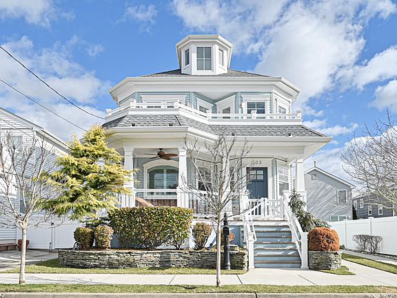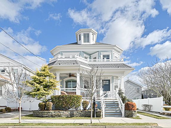 Welcome to 203 N Huntington Ave in Margate NJ. Built just 5 years ago by renowned architect and builder Robert Kiejdan the highest quality build. Prepare to be wowed from the moment you view the outside of this home. Breathe in the beach air from the ample front porch. The open design hosts a large living area with a fireplace, dining area which fits a large table and built-in buffet, an all white custom kitchen with a large center island. The first floor also houses a powder room and laundry room with access to the fenced and paved backyard, room enough to enjoy cooking and dining outside. The second floor hosts the main bedroom suite with a walk in closet, and a private outdoor deck, plus 2 bedrooms and large bath. Designed as a 5 bedroom, 3.5 bath home this home currently boasts an open den on the third floor instead of the 5thbedroom/ perfect for that extra space or an office. Huntington Ave is located in the center of town and walkable to the beach, boutiques and several restaurants.