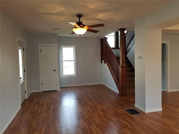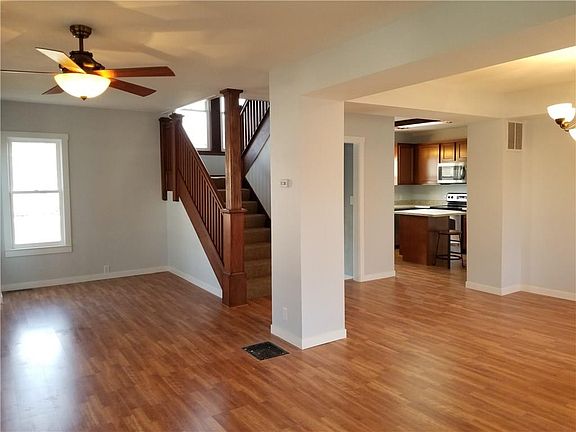 Beautiful newly remodeled house has 4 bedrooms, 1 1/2 baths and full basement. Open concept, nice floor plan. Updated but still keeping it's old charm. New in 2017; siding, roof, gutters, kitchen, baths, laminate flooring, furnace, water heater, plumbing and electric. This is a must see! Large paved parking area great for kids to play basketball.