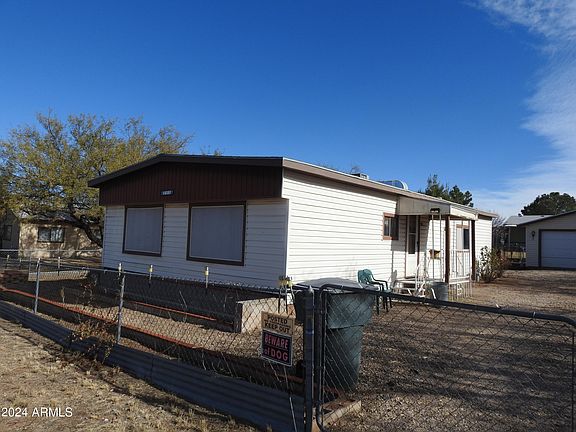 Here is your opportunity to acquire and live in this spacious affixed, 1974, 1248-sf, 3 bedrooms, 2 bath manufactured home minutes from I-10, exit 297, with Central Air. You will enjoy the spacious 2 car detached garage to park your cars, use as workshop, or storage. There is room to park your RV and other vehicles. Property is fully fenced, with low maintenance yard, plus has an enclosed fenced rear yard. Enjoy this location, which is about 30 minutes from Tucson, short drive to Benson, Sierra Vista, plus you have paved street. With some minor updating this can be your dream home. Call to view today.