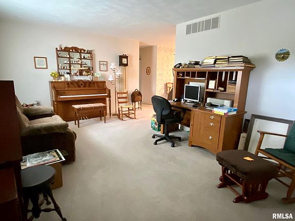 Take a look at this quality all brick home on .80 acre with 3 BR, 3 BA, a large family room with a fireplace and a heated/cooled sunroom! Outside, you will love the additional parking and storage with an attached 2 car garage, detached 2.5 car garage with a heated/cooled workshop side and a separate 12x16 storage building that is also heated/cooled. Updates include: water heater 5/28/20, heat pump 2023, roof on the house and buildings Aug 2023, and gutter guards (not on sunroom). Beautiful yard and landscaping and close to I-57. If you are looking for a spacious home with all the costly items already done, this is the one for you!