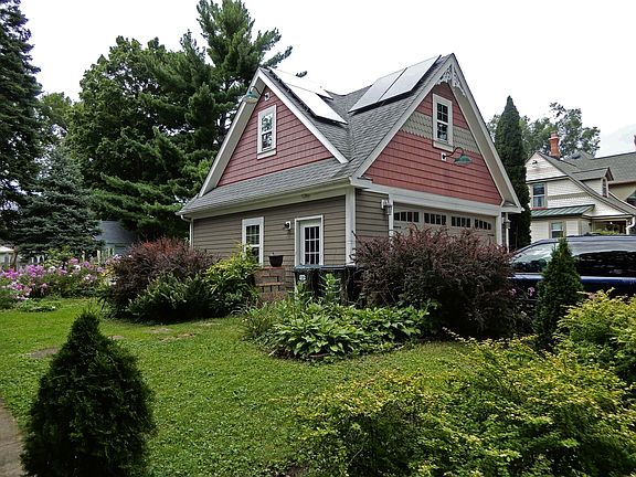 Ideal location in Palatine's historic district. This is a vintage 2 story frame cottage style home located on a corner lot. There is a newer detached two story garage accommodating 2 1/2 cars. The upper level was planned to be a living area. The homeowner was in the process of complete rehab of the residence. Electric and breaker box are new. Electric is supplemented by solar panels. Interior walls are down to frame, making it difficult to provide room descriptions and measurements. Records indicate this a 2 bedroom, 1 bath, 2 story with basement. These features are obtained from records.