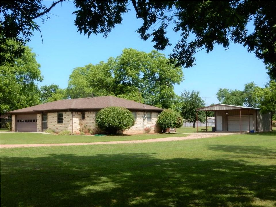 Private 3 Bedroom, 3 Bath on 1 Acre with 20 x 20 insulated Workshop! This property offers plenty of room for your family, pets, toys, garden, etc. Home offers 3 Living areas with HUGE Den that's open to Kitchen & Dining. Other features include Sunroom, updated Master Bath & shower, new inside paint, Jacuzzi tub, gas cooktop, breakfast bar, gas log fireplace, & built-ins in Den. Outside you'll love the Workshop with electric & large awning for more cov'd parking, patio area, several outbuildings, grape vines, garden area, pipe fencing, & plenty of room for your kids & pets to roam. Here's your chance to live the country life but still be in town and close to schools, shopping, etc. Buyer to verify all info.