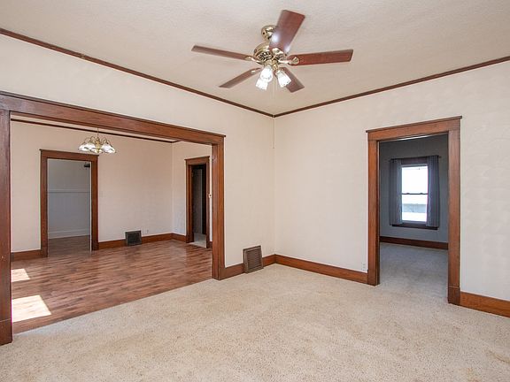 Enjoy small-town living with room to spread out on this rare in-town acreage featuring 3 acres and a move-in ready home! This property offers 3 bedrooms, including a spacious finished attic used as a non-conforming bedroom not counted in the square footage, and 1 full bath. Inside, you’ll find fresh paint throughout, beautiful original woodwork, walk-in closets, and the convenience of a stackable washer and dryer. Both the front and back entrances feature finished mudrooms, adding charm and functionality. Outside, enjoy a fenced pasture ready for hobbies or animals, along with a detached 2-car garage providing plenty of storage and workspace. With its character, updates, and space both indoors and out, this home is the perfect balance of small-town comfort and acreage living—ready for you to move right in!