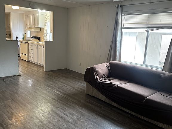 This charming home features a covered porch carport, and outside storage. Recent updates include a new membrane roof and heat pump within the last five years. The kitchen has a large walk-in pantry plus extra storage in the dining area. The primary suite offers a spacious walk-in closet and ensuite bath. Located in a quiet community, this home is move-in ready. Washer, dryer, and couch are included. Buyer to check with park manager for rules and to apply.