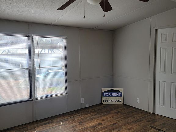 Cozy 2 bedroom 2bath mobile home in a park-like setting conveniently located just a few miles from 29 and 85 in Anderson South Carolina. Beautiful master bath with soaking tub and shower, two sinks, located right off the master bedroom. The master bedroom has a double-door entrance, two spacious closets, and a double-door entrance into the family room. The kitchen has eating area with room for a table in addition to the breakfast bar with stools. A Double sink, dishwasher, stove, and refrigerator with a dry bar complete the kitchen area. Down a short hallway is the laundry area, second full bath, and second bedroom with closet. Mini blinds and ceiling fans throughout. Rent is 1080.00 per month with the tenant responsible for utilities. Park maintains lawn care and trash pick up. Do you qualify? This is what the owner is looking for: No past evictions or criminal record. Income must be 3 times the rent, monthly. This home has not been approved for section 8 at this time. Any questions please feel free to email Cheryl at G2gmanagementservices@gmail The owner pays for lot rent, lawn care, and trash. Electricity and water is the tenant's responsibility. No smoking or vaping. Park rules must be followed. Indoor small, non aggressive breeds: Pet Deposit is $400.00 with Pet Fee (non-refundable) $200.00