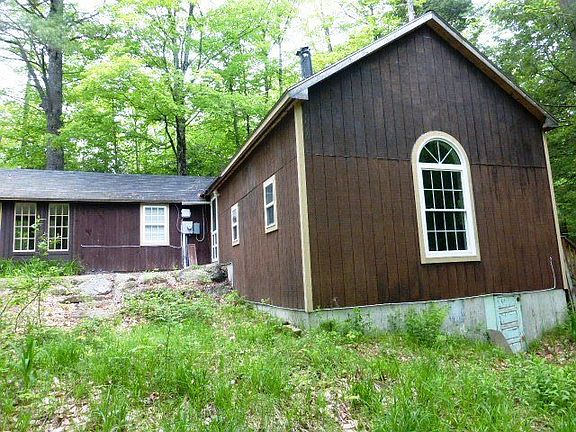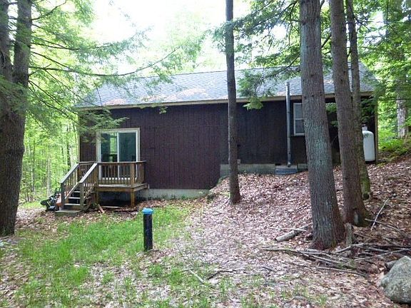 Danbury, NH - Nestled in off the road this 1940s camp was updated with a large addition constructed in 2013. Lots of windows to enjoy the natural setting. 2-3 bedrooms, sunny enclosed porch, large open living/dining area with cathedral ceiling and fireplace. Right across from beautiful Ragged Mountain Resort on 2+- acres. Terrific getaway or a great first time home. Needs TLC. Please note this property will not qualify for an FHA loan.
