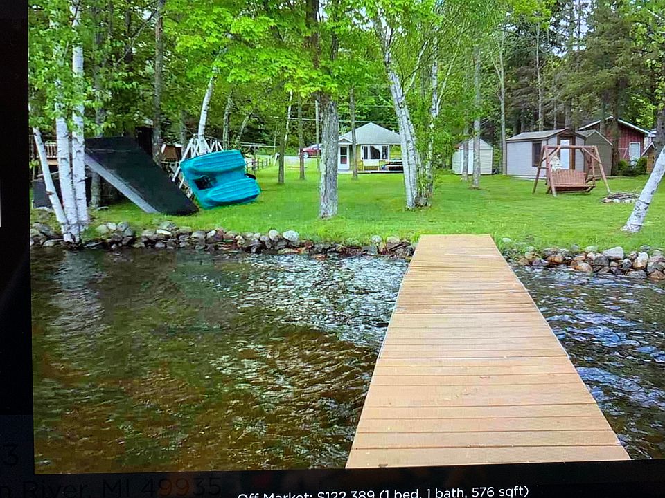 Affordable family getaway cottage on beautiful Sunset Lake. Open kitchen living dining area plus a bunk room with free standing closet (included) and shower stall. This property features a nice level yard for easy access to 90 feet of beautiful sandy swimming frontage with a dock in place. Bates township water and sewer. Newer waterline in place. Three storage sheds also included one with bunks for overflow company. Furnishings negotiable, one refrigerator and stove to stay.