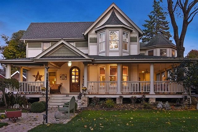 Exclusive Victorian on oversized deep Village lot. Restored & updated impeccably! Chef's kitchen w/farmhouse sink and top of the line appliances: Wolf range, Fischer-Paykal DW, built-in warming drawer, second prep sink in island and cabinet faced refrigerator. Beautiful custom cabinetry, honed granite, hand mill work/molding & trim throughout and open floor plan offers the perfect blend of vintage modern where nostalgia meets 2016 amenities. Breakfast bar plus large eating area; butler pantry w/wine fridge; DR w/hand-milled beams salvaged from Ft. Sheridan. This home boasts a luxuriously appointed master bedroom and bath en suite with fireplace and huge walk in closet! 5 bedrooms / 4.1 baths; 2nd floor laundry, octagonal library, glorious mudroom/craft room and finished basement with additional full bath! The wraparound porch is perfect for lazy summer days and a backyard FP offers the perfect retreat for chilly evenings. Blocks to train, schools, shopping & restaurants.