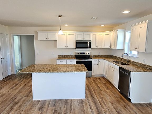 New construction in Hunters Lake. This 3 bedroom 2 bath home has a great layout. In the center of the home is a large open kitchen, dining and living room. Kitchen has S.S. appliances and an island. At the back of the living area is sliding doors going to a covered back porch over looking the pond. Master bedroom has an attached master bath with double vanity and walk-in shower. Through the bathroom you will find a HUGE walk-in closet. On the other side of the home is two bedroom and a full bath. Laundry is located in hall coming in from the 2 car garage.