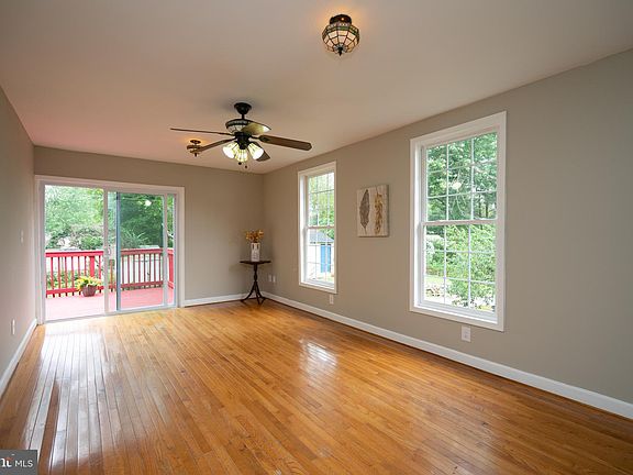 Larger home is extended on two levels! Wood floors, new appliances, upgraded kitchen, 2 main level bedrooms to include large master with ensuite bathroom + guest full bath on main. Two upper level bedrooms with an upper level full bath, sunlit family room with large windows! View fenced in yard from the deck Basement with a fifth bedroom has walkout access. Plenty of parking in long driveway.