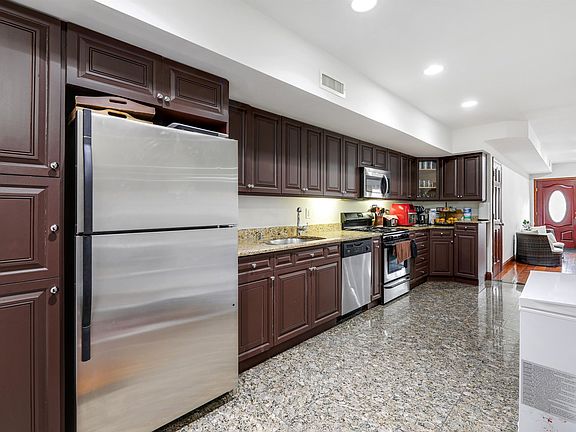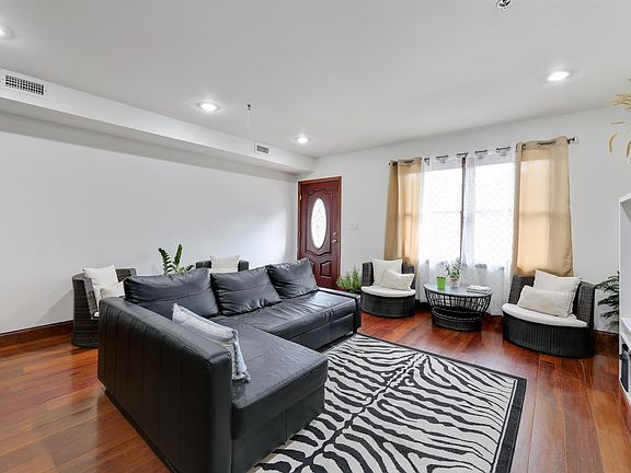 Enjoy Union City's best neighborhood in this large, beautiful duplex home with attached garage parking and almost 2300 square feet of living space. Upon entry, you will find a large open concept living area, perfect for entertaining guests or relaxing with your family. Gorgeous hardwood floors lead you to the kitchen with granite counter tops, wood cabinets and stainless steel appliances. Large master bedroom with walk in closet and a full ensuite bathroom with double sinks and a jacuzzi tub. Laundry room conveniently located outside of all three bedrooms on the main level. The lower level with private entrance and full bathroom can be used as another bedroom, recreation area, home office, or kids play room. Drink your morning coffee or evening cocktail out on your private front porch. 6 min walk to the 9th Street Light Rail station and buses to NYC even closer- just one block away. You can be in the City in less than 20 minutes and in Hoboken in less than 10! One block away from beautiful Washington Park and it's brand new dog run and municipal pool just up the street. Make an appointment to see all this amazing home has to offer in person.
