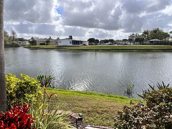 Finding a Mobile Home with one of the best views of Palm lake is just the beginning. In addition, to a fantastic location, this home offers all the great qualities offered with an Open Floor Plan that everyone searches for. A home with a very inviting entryway that leads you to the wide-open kitchen that offers a stainless steel refrigerator, oven/range, dishwasher, and microwave oven. There are numerous cabinets and pantry, plus a convenient center island featuring a quartz countertop. The kitchen has ceramic flooring. Adjacent to the kitchen is the formal dining area and large family room all with laminate flooring and exposure to view Palm Lake. There is a large master bedroom with a master bath and two large double-door closets. the guest bedroom is carpeted and there is access to a convenient guest bathroom. Another outstanding feature is the lanai off the dining area, the large comfortable lanai overlooks Palm Lake offering a fantastic view, plus access to a screened-in porch, In addition, there is a patio enmeshed with plantings and palm trees available for your relaxation. The lot rent is $893.47 including pass-on taxes and includes lawn mowing and trimming Spectrum internet and cable with 2 HD boxes, and all the activities offered in the 13,000 sq ft Clubhouse including a fitness room, library, billiards, ballroom, craft room, and numerous planned activities. Also included is the Olympic size swimming pool, sun deck, fire pit, and outside the kitchen. All listing information is deemed reliable but not guaranteed and should be independently verified through personal inspection by appropriate professionals. Integrity Mobile Home Sales cannot guarantee or warrant the accuracy of this information, measurements, or condition of any property. Measurements are approximate. Lot rent subject to change