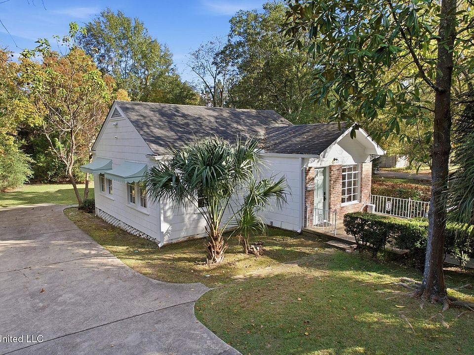 Charming Hattiesburg cottage on a double lot! This updated home sits in a quiet, tree-lined setting close to Midtown, USM, grocery stores, restaurants, and shopping. Inside you will find refinished hardwood floors, fresh interior paint, and a bright living area with large windows that bring in plenty of natural light. The layout flows easily into the eat-in space overlooking the front hedges and porch railing. The kitchen has been completely updated with butcher-block countertops, navy cabinetry, subway tile backsplash, stainless appliances, open shelving, and patterned flooring for a crisp modern look. Plumbing, electrical, HVAC, and all appliances were replaced about four years ago, and the home includes a tankless water heater. The hall bath features updated subway tile walls, a modern showerhead, and a window that keeps the space bright. Bedrooms offer original hardwood floors, solid wood built-ins, and large windows with views of the backyard and surrounding greenery. Outside, a small back deck accessed from the primary bedroom steps down to the spacious double lot, offering room to spread out, enjoy the mature trees, or create future outdoor areas. The front walkway is lined with trimmed hedges, and the property includes classic architectural details like the scalloped awning, brick accents, and cottage-style window grids. This home has been a successful short-term rental and has been maintained with care inside and out. Furnishings are available for separate purchase if desired. Schedule your private viewing today!