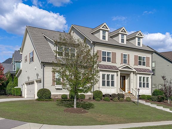 WELCOME to this stately home in Cameron Pond in Cary, NC 27519! This 5 bedroom, 4 full, 2 1/2 bath property is located on a corner lot and offers plenty of privacy! Upon entrance, you'll be greeted by soaring ceilings, hardwood floors & fresh paint throughout. The bright open floorplan is perfect for large gatherings or cozy nights at home. The main floor bedroom & bath are terrific for house guests. LOVE that DROP ZONE! The incredible kitchen has tons of storage & counterspace, and an island w/prep sink. (That REFRIGERATOR though!) A BUTLER’S PANTRY w/TWO bev fridges, leads from the formal Dining Room w/modern wainscoting detail. The opulent Primary Suite has separate vanities w/garden tub & large shower. The WFH OFFICE is an ideal size! The finished THIRD FLOOR offers another 1/2 bath and a wet bar. NEW CARPET! The screened porch/patio/rear fenced yard will surely be a favorite spot to enjoy our four seasons! 3 car garage. Whole house generator. This is the one you've been waiting for! Hurry!