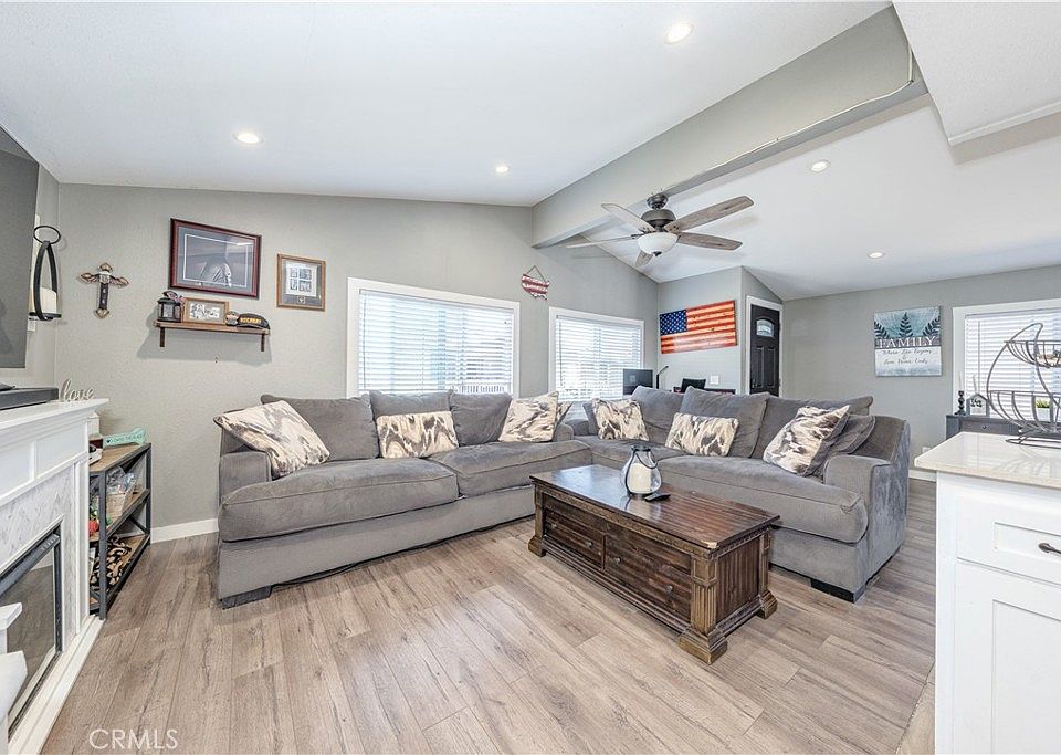 Welcome to this charming 3-bedroom, 2-bathroom residence nestled in the desirable Fountain Valley Estates. As you step inside, you'll be greeted by an airy atmosphere, enhanced by beautiful wood-like flooring and soaring high ceilings that create a sense of space and elegance. The heart of this home is its modern kitchen, a culinary haven featuring generous cupboard and counter space, perfect for the home chef. The inviting serve-over bar facilitates casual dining and socializing, making it a great spot for morning coffee or casual meals. Adjacently, the cozy living room boasts a warm fireplace, seamlessly connecting to the dining area, ideal for entertaining family and friends. Retreat to the luxurious primary bedroom, which offers ample space and a walk-in closet. The upgraded ensuite bathroom is a true sanctuary, featuring a stylish dual sink vanity and a relaxing shower/tub combo for your comfort. The additional two bedrooms provide versatile options for family members or guests, ensuring everyone has a comfortable space. The convenience of an indoor laundry area adds to the home's appeal. Step outside to discover a private outdoor space that includes parking for your vehicle, a storage area, and a grassy yard with fruit trees. This home also boasts a range of thoughtful upgrades, including a brand-new water heater, tilework in the kitchen and bathrooms, scraped ceilings, and an open floor plan that promotes effortless flow throughout the living spaces. As part of this vibrant community, you'll have access to fantastic amenities such as a clubhouse, inviting swimming pool, recreational facility, basketball court, barbecue areas, and a spacious grassy area for your furry friends to enjoy. Fountain Valley is renowned for its outstanding schools and is conveniently located near an array of shops, dining options, and transportation. With Fountain Valley High School just a short walk away and the 405 freeway only a mile from your doorstep, this is an opportunity you won’t want to overlook!