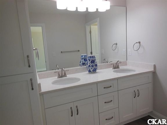 (Agent-Owner) Custom built, ranch style brick home in the Hunt Farm subdivision. Open concept kitchen, dining area and great room with a tray ceiling are centrally located in this house plan. The covered porch and extended patio open from the great room and kitchen. The Kitchen has an abundance of Dove White Barber Cabinets with soft close doors and drawers, pull out trash and recycling cans, a built in pantry with pull out shelves, stainless range, microwave, dishwasher and a lazy susan. The Primary bedroom has a walk-in-closet with shelving/racks for hang-ups and shoes, etc. The Primary bath has a quartz vanity top, double sinks and a walk-in shower. 2 more bedrooms and a Hall Bath are on the opposite side from the Primary Bedroom for extra privacy. The Laundry room is spacious with built in cabinet and shelving and a 2 car garage with keypad. (Landscaping will be installed in the Fall) ( Screen is being installed on the covered porch) Call for your appointment soon.