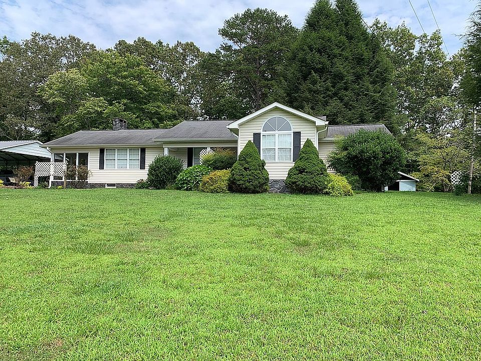 Welcome home! Home was updated in 2020! This 3 bedroom, 2 full bath home is in a quiet, country setting, with beautiful landscaping and mountain views. It has 2.5 acres of cleared land. The house is 1670 square feet of living area, has a partial unfinished basement, front porch, back deck, screened in porch, 2 vehicle carport plus an additional carport for your lawnmower or vehicle. The Living Room has a cathedral ceiling with stone fireplace, and features fire logs installed in 2020 and oak flooring. The recently updated kitchen features fresh paint, new granite countertops, new sink, sink fixtures and new garbage disposal were all installed June 2021. Master bedroom and Master bath have vaulted ceilings. Bathrooms have ceramic tile floors. Newly installed central air and heat installed in 2019. This home has an outbuilding for garden tools and storage. The home also has well water with new water pump installed in June 2021, and has great water pressure. Home is sold As Is. Call Peggy: (706) 633-4345 to schedule a showing or with any questions.