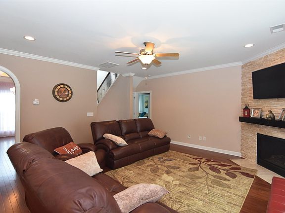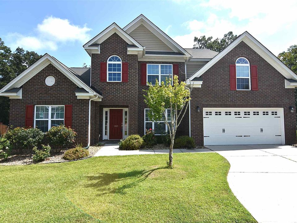 Welcome home to this all brick beauty located in the Cul-de-sac on .29 of an acre. This stunning home has gleaming hardwoods throughout most the main floor. Formal dining with coffered ceilings and wainscoting. Huge great room with a floor to ceiling accent fireplace feature. Large spacious great room opens to the eat in area and kitchen. The Chef's kitchen has tons of cabinets, granite counter tops, tiled backsplash and a huge pantry. Downstairs laundry with extra storage. Owners suite on the main floor with sitting area, huge walk in closet and a large owners bath with dual vanity, garden tub and walk in shower. Other bedrooms are up and all are very spacious with nice large closets. Two shared full bathrooms, one has a dual vanity. The FROG makes a great media room, office or multi purpose, it also has a closet so it could also be consider the 5th bedroom. This home has tons of walk in attic storage. Private backyard haven with a nice patio and extra large patio area for grilling and family gatherings. Raise planter for gardening, very well established fruit bearing bushes and vines. Tankless hot water, sprinklers with 4 zones and a very energy built home. This is a must See! Seller will provide one year home warranty to convey to the buyer at closing. Call today for your private showing.