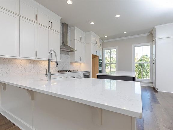 - Kitchen Features: Breakfast Bar, Pantry, View to Family Room, Stone Counters, Kitchen Island, Cabinets White