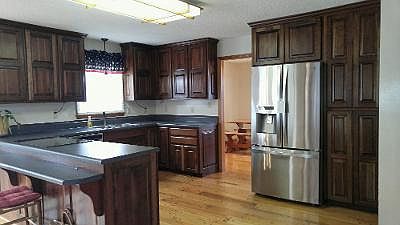 Beautiful custom built home in the middleof a family farm. Quality construction, brick,4 Br, 3 1/2 Ba, Walk in level w master and 1 1/2 baths, formal dining, huge kitchen with breakfast area . Pantry, storage, lots of cabinets,hardwood throughout main level. Up stairs 3 large Br, 1 full bath, walk in closets and additional storage area's. Full basement with finished den w gas fireplace, sewing room and full bath with walk in shower. Large canning kitchen with storage. 2 full panel electrical boxes, well, utility sink and washer/dryer connections in basement. Large 2 car detached garage with lots of cabinets and work space, 500+ finished storage over garage. Lower outdoor patio, Great wrap around porch with magnificent mountain views. On a dead end road, great neighbors who has farmed here for generations.