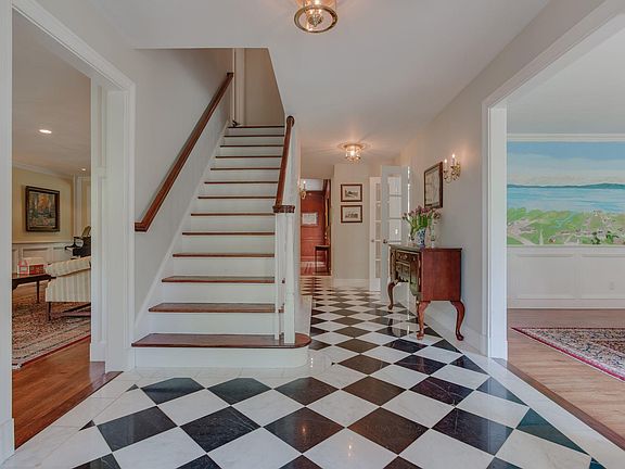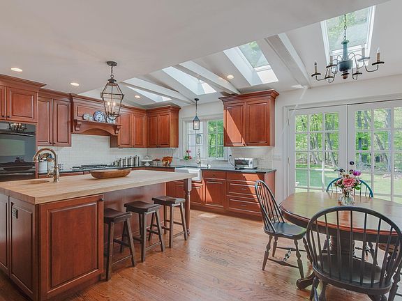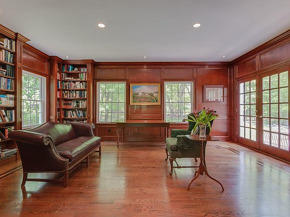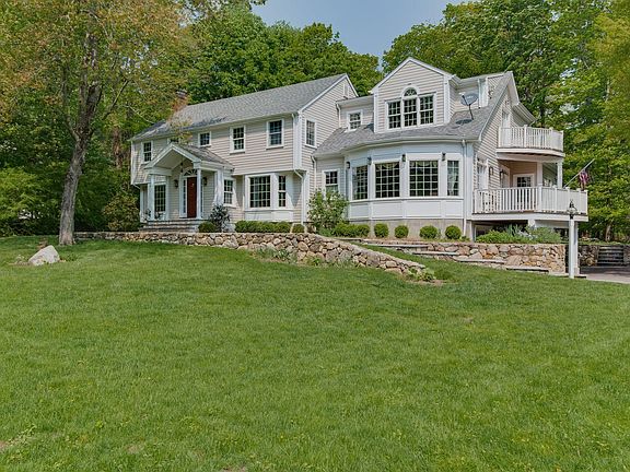 Inviting updated colonial loaded with curb appeal and bright, airy space in a delightful pond setting. This turnkey 5 bedroom home offers a sunny kitchen with skylights, expansive living and family rooms with fireplaces, cherry library, nanny/in-law suite, master suite with fireplace and balcony, basement playroom and even a dog bath in the mud room! Kitchen French doors lead to a stone patio and flat back yard. Scenic side deck overlooks pond and stream. Watch the egrets, ducks and otter from your own private nature sanctuary on a bucolic 2 acre lot, yet close to town, schools and train!