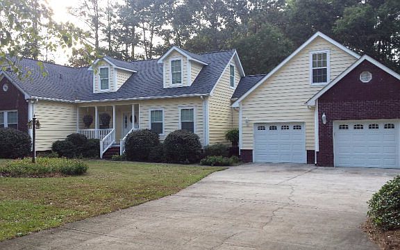 Beautiful 10 yr old home in very private setting, 3 bedrooms with an additional 2 'offices' setup as guest rooms! story & a half, with attached 2.5 car garage, over sized lots, nice amenities, new appliances, fireplace, glamour bath, 9 ft ceilings, sunroom, granite counters throughout, lots of space for a very low cost per sq. ft.!