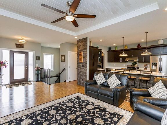 Modern luxury living in this 5 bedroom, 3 bath home built by Hanson Homes in 2013. Over 2,800 finished square feet. The home offers an open kitchen with stainless steel appliances, large eat-in island, sleek countertops and ample storage in the maple cabinets. The home has both laundry and master bedroom on the first floor for your convenience. The master bedroom and living room are complete with tray ceilings. There's a generously sized lower level family room with endless possibilities of how to utilize the space. The home has a heated garage as well as a Lifebreath air exchange system. There are many upgrades throughout and the attention to detail is evident.