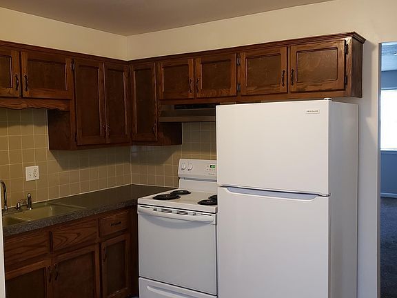 We are a small, quiet, 15 unit, single-level apartment complex. Parking is located safely at your front door. This apartment has been beautifully renovated with freshly painted Tempered Gray walls and bright white trim in every room except the kitchen, which is Bistro White with white trim. Complimentary colored flooring and a new counter top in the kitchen. New blinds and stylish light fixtures are throughout this apartment. Included are a new stove and a new refrigerator, purchased July of 2021. Washer and dryer are also included and conveniently tucked away in the kitchen in a nook that includes shelving for additional storage. There is a small back patio area as well. We are family owned and currently renovating Twin Oak Apartments one unit at a time. All of our apartments are two bedroom, one bath. Tenants are responsible for paying electric, water, cable and internet. We provide a dumpster for trash removal. We do not allow pets or smoking in our apartments and we strongly enforce those rules. $250 Security Deposit - 12 month lease agreement. Twin Oaks Apartments is located in a peaceful, park-like setting and it's our goal to provide a quiet, serene living environment for our tenants. We are located less than one mile from the Clinton Senior Center, Benson Community Center and Katy Trail, and less than 3 miles from Golden Valley Memorial Hospital and the historic Clinton Square's shopping, dining and banking.
