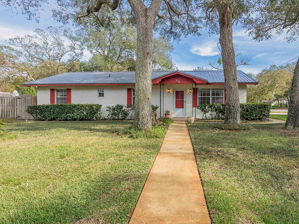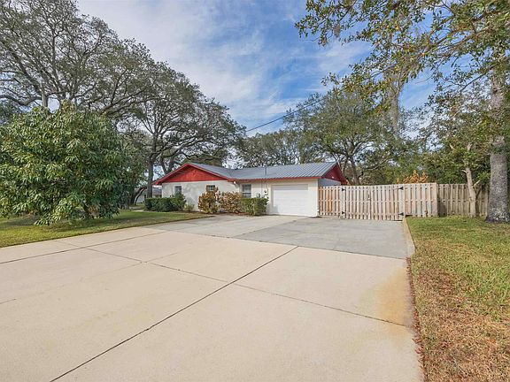 Rock-solid, this CB Construction home has 3 bed/4 bath with hardwood and tile floors throughout. Full of potential, the house needs a little reimagining (cosmetic updates) to transform it into a charming family home. Structurally sound, the home is concrete block with a durable metal roof (2016), new HVAC (2022), new hot water heater (2019) an enclosed glass lanai (2008) and, features an option for an office/den area. Located in the desirable St. Augustine South neighborhood, this community does not have an HOA, which allows the owner to keep recreational vehicles on the property. Sitting on a large corner lot and a fully fenced backyard, this home has a single-car garage but a massive parking pad for at least 4+ cars. Just a short 10-minute drive to the beach and historic downtown, St. Augustine South is a popular neighborhood that includes two boat ramps, parks, walking trail and gorgeous intracoastal views. Short- and long-term rentals are allowed – check with local government zoning offices for regulations.