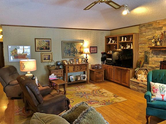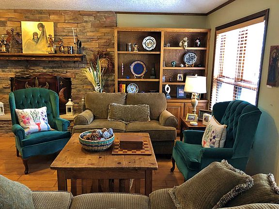 THE HOME YOU'VE BEEN SEARCHING FOR. SINGLE LEVEL HOME. SPACIOUS OPEN FLOOR PLAN FEATURING A STACKED ROCK FIREPLACE. KITCHEN HAS GRANITE COUNTERS, OAK CABINETS, DOUBLE OVEN, CENTER ISLAND, PANTRY AND A CONVERSATION BAR. SEPARATE DINING AREA. 4 BEDROOMS. MAIN BEDROOM IS OVER-SIZED WITH ITS OWN BATHROOM & PRIVATE PATIO DOOR. 4TH BEDROOM HAS ITS OWN EXTERIOR ENTRANCE & IS CURRENTLY BEING USED AS AN OFFICE. FRONT AND REAR DECK AREAS ARE CRAFTED FOR OUTDOOR ENTERTAINMENT, WITH PLENTY OF ROOM. MOUNTAIN VIEWS. HOME HAS NATURAL HAND SCRAPED PECAN WOOD FLOORS, REFRIGERATED AIR-CONDITIONING, SIZABLE LAUNDRY ROOM AND ATTACHED GARAGE WITH BUILT-IN CABINETS & ROOM FOR A GOLF CART.