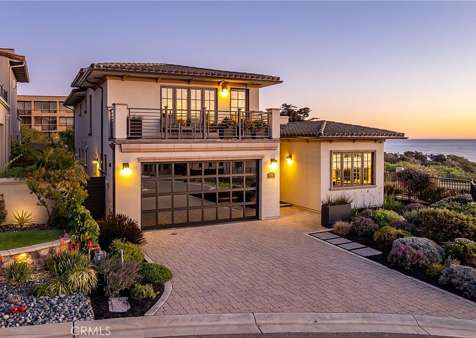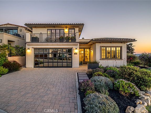 Welcome to 203 Radda Way, a beautifully appointed coastal retreat located in the exclusive Sunset Beach Estates enclave of Shell Beach. This extensively upgraded home spans 2,461 square feet, thoughtfully designed to showcase breathtaking 180-degree ocean views on both levels from Avila Beach to Point Sal. Upon entering into a spacious foyer through the double doors, you'll find an open kitchen with granite countertops, high-end stainless steel appliances, kitchen island with bar seating, and ocean vistas. The elegant concrete floors, highlighted by chandeliers and view windows, create an inviting ambiance. Adjacent to the kitchen is the living room, which opens to the backyard through French doors, and a dining area with a glass bulb chandelier and a gas fireplace. On the main floor, there's a guest en suite bedroom with a walk-in closet, French door leading to the backyard, and a luxurious bathroom with marble countertops and walled shower, upgraded lighting, dual vanities, and a soaking tub. Down the hall, you'll find another bathroom with a shower, a guest bedroom currently used as an office, a laundry room with a sink and hanging space, and access to the two-car garage with mirrored garage door. The owner's suite is located upstairs to maximize the sweeping ocean views and features hardwood flooring, a custom walk-in closet with an operable skylight, and a spa-like bathroom with marble countertops and walled shower, dual vanities, beautiful pendant lighting, and a soaking tub. A spacious library or second living room with custom built-ins provides access to an ocean-view entertaining deck and front balcony, both offering stunning ocean vistas. Outside, a large paver patio and meticulously landscaped backyard with spectacular coastal views provide the perfect setting for relaxation and entertaining. The home also boasts radiant floor heating throughout, HunterDouglas blinds, casement windows with interior screens, an owned solar system with ten solar panels, a backup generator, fireproof safe, security system with cameras and interior motion detection, and gated entry to the Sunset Beach Estate development. Conveniently located with direct access to the beach stairs, nearby resort restaurants, the Shell Beach Village, Highway 101, and only a 15-minute drive to the San Luis Obispo Regional Airport. Discover the epitome of Central Coast elegance at 203 Radda Way!