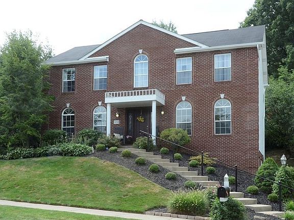 A fantastic 4 bedroom 3 full bath brick front colonial in the heart of Moon!! Cul de sac neighborhood. Large eat in kitchen with oak cabinetry, double oven, recessed lighting, tile backsplash, peninsula island and pantry. Dining room with double windows, chair rail, crown moulding. Family room is wired for surround sound, and features a wood burning fireplace, brick hearth, and built ins. Spacious bedrooms and master suite with vaulted ceiling, walk in closet, spa bath. Newly remodeled gameroom with full bath. Relax on the columned front porch OR large covered deck with skylights great for entertaining. Professional landscaping. Newer furnace, hot water tank, and washer and dryer. Newer carpeting on upper level. Security system and central vac. Playset included. Home Warranty too!! The one you've been waiting for!!!