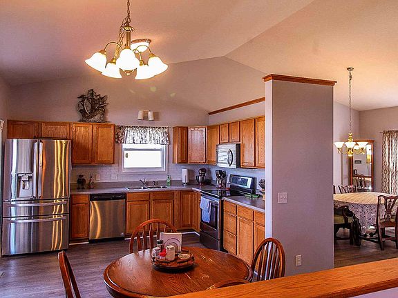 Open house has been cancelled. WALK OUT BASEMENT at $185,000?!?!?! Welcome home... A touch of color in the shutters and door nicely complements the soft subtle grey tones of the interior. Almost the entire home has been recently painted so this one is move in ready. The main floor of the home is all laminate flooring; from the front door to the patio door to the garage door. As you enter the home you have a flex room to the right ( it is currently used as a formal dining room). Around the corner you will find a LARGE eat-in kitchen with a wonderful run of cabinets, grey counter tops and newer stainless steel appliances. There is even enough room to add a nice island if you choose. The glass subway tile back splash is a nod to elegance in this comfortable home. Out the patio door is a 13 x 13 wood deck with stairs down to the yard and lower level living space. The great room is anchored by a tile fireplace and open to the kitchen / eating area. Upstairs you will find a nice landing, hall closet, a main bath and 3 bedrooms. The generous main bedroom is an ensuite with a walk in closet and full bath. Upstairs has ALL new carpet. The WALK OUT BASEMENT has an additional half bath that is completely done. The rest of the lower level is your equity when you drywall, paint and add flooring. The slider on the lower level leads out to a LARGE patio and entertaining area. All the attached shelving in the 2 car garage will stay.