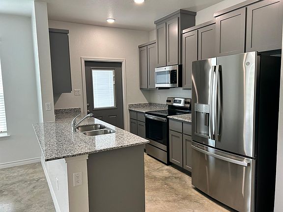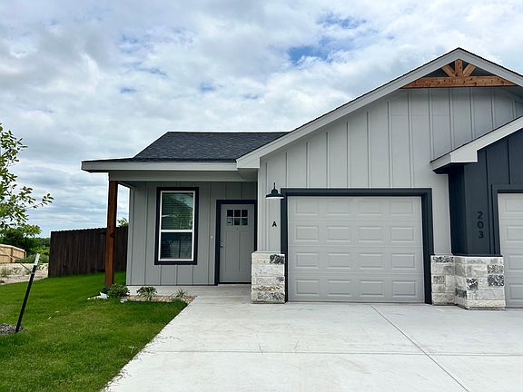 Like NEW, 3/2 duplex in East Temple. Modern, upscale living. Units are in the back of community and back to a green space, with private fenced backyards and trees! Beautiful landscaping in front for curb appeal. Minutes to downtown Temple, Baylor Scott and White, and I-35. Tons of dining, shopping, and recreation nearby. Stained concrete flooring throughout, no carpet. Open living/kitchen with large granite bar. Samsung Washer/dryer included. Large primary bedroom with walk in closet, double vanity, and soaking tub/shower combo. Fenced backyard. One car garage with automatic opener plus driveway space. Attic access with pull-down stairs and additional storage. 12 month, no smoking, tenant responsible for all utilities and lawn
