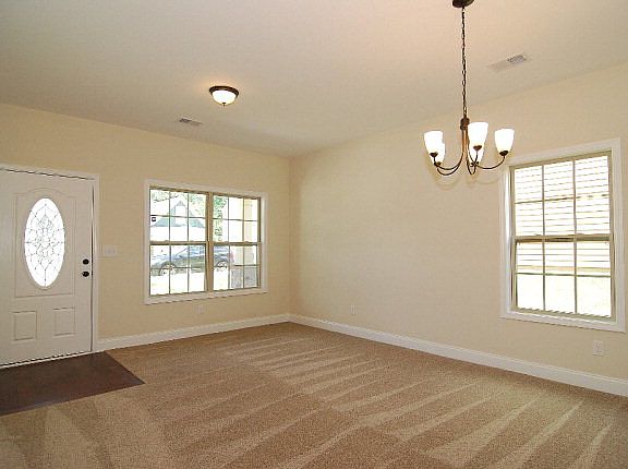 Beaufort - Beautiful, open , 4 bedroom plan. Formals greet you at the front door, with a half wall separating them from the great room. Large great room with ceiling fan and open to the eat-in kitchen. Great kitchen with granite counters, stained wood cabinets, stainless steel appliances, recessed lights and large pantry. Access to covered porch from kitchen, perfect for relaxing with dinner or drinks after work. Master suite upstairs has tray ceiling, with private bath and large walk-in closet. Huge laundry upstairs.