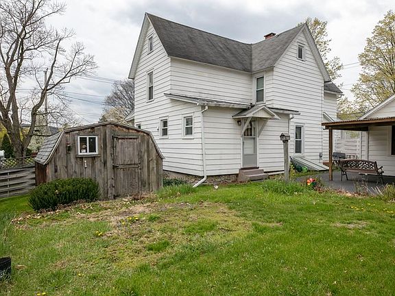 This home has been lovingly cared for over the years and is now ready for a new owner to come make it their own. The first floor of this spacious home features a kitchen, dining room, living room, and family room/den with a bar. There are two staircases to the second floor where you will find 3 large bedrooms and a bathroom. This home is situated on a corner lot with a full two car garage and a workshop. The wrap-around porch and private patio space gives this home the curb-appeal appeal and character that is hard to find. Pre-qualified buyers only, sold as-is, home inspection on file.
