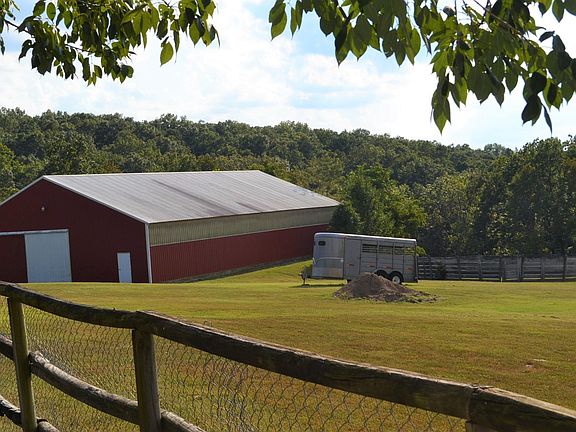 This is a Serious Horse Enthusiast property with a 50x100 INDOOR RIDING ARENA and a 40 foot diameter solid wood RoundPen. Park like setting with a 3 bedroom home sitting atop the property with the view of the property and to watch the horses/livestock grazing the land and overlooking a spring-fed pond. Home has a great distant view to enjoy from a great gathering place in the screened in attached 16x16 foot porch and large windows across the living/dinning room. Indoor Riding Arena has 7 horse stalls and 2 larger foaling stalls. Heavy horse wire in each stall and 2 inch solid Oak sides and along the perimeter of the riding area with wood for protection of the rider and don't forget the kids, the Indoor riding arena will make a great place to ride the battery operated vehicle or bikes.