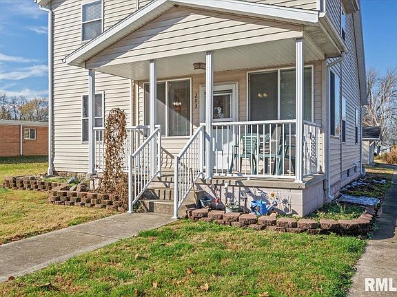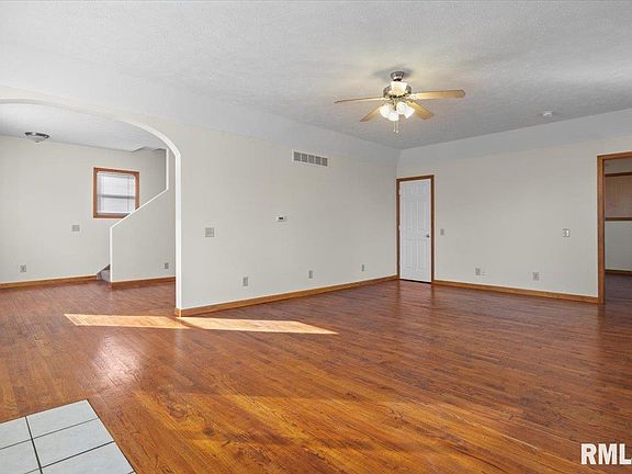 This 4BR, 4BTH home w/9ft ceilings was totally renovated down to the studs in 2007! Each bedroom has its own updated private bath w/jetted tub in Master BTH. Amazing hardwood floors and laundry on main level, updated kitchen w/stainless steel appliances. Dual HVAC systems, roof, 75 Gal Wtr Htr and replacement windows 2007. Rec Rm in partially fin basement with separate access to backyard. Wood deck for entertaining with elevated playhouse. Heated garage is 2 car in size and 10 ft ceiling w/12 x 20 outbuilding w/electricity. Home on corner lot on town square and is right across the street from the park and next door to public library. You can't beat small town living!