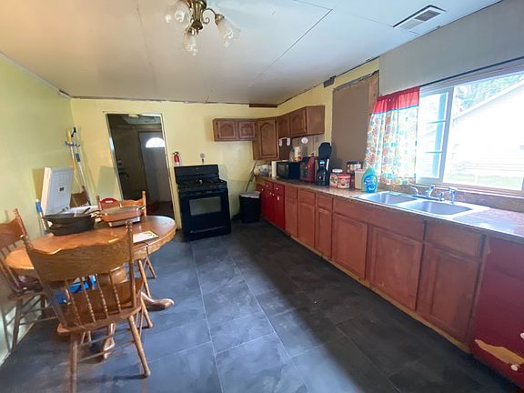 Great Corner lot, with 2 Bedrooms, large living room, spacious kitchen, deck, 1 car detached garage. Newer GFA furnace, newer counter top, with 100 AMP breaker box. The upstairs is blocked off and just one large room which could be used as a bedroom. Sold as is.